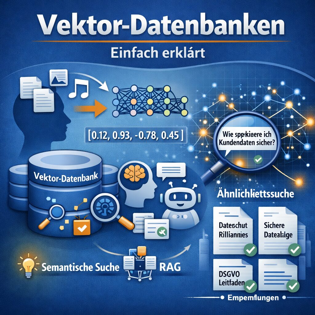 Vektor-Datenbanken gehören zu den wichtigsten Bausteinen moderner KI-Systeme. Wer heute über Large Language Models, semantische Suche, RAG oder intelligente Chatbots spricht, kommt an diesem Thema kaum vorbei. Trotzdem wirkt der Begriff auf viele Menschen zunächst technisch und abstrakt. Genau deshalb lohnt es sich, das Thema von Grund auf zu verstehen.
